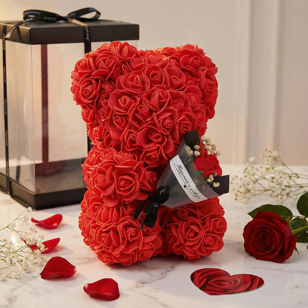 Unlike fresh flowers, this rose bear is designed to be kept — a lasting reminder of your love that looks just as beautiful days, months, and years later.